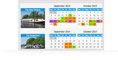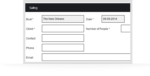 You can see by boat, by month, where the busy and quiet times are. Once you click on a date, you are presented with any existing bookings for that date. This allows to either choose one of them to further manage, or if you are making a new booking, you can see what times to avoid and create a new booking safely.